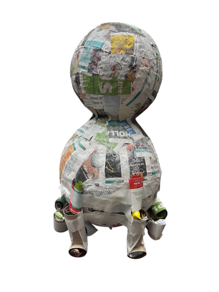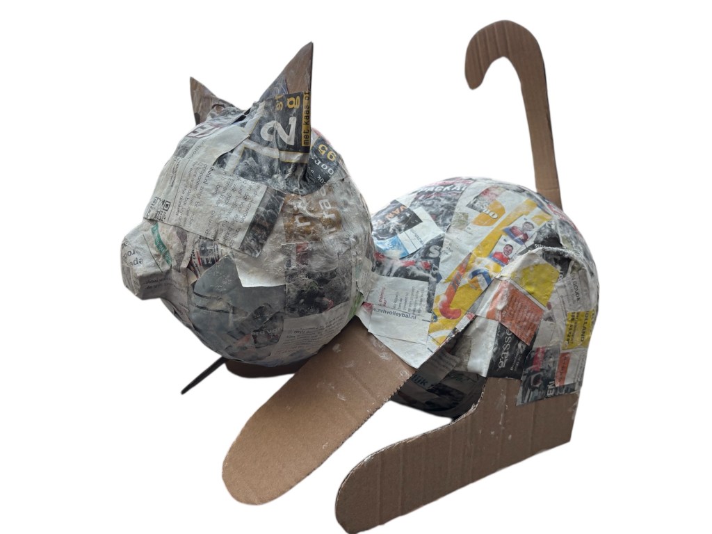 Papier-maché is een knutsel techniek waarbij papier wordt gebruikt samen met een lijmmiddel. Meestal worden kranten of reclame folders gebruikt, die je in stroken knipt. Hiermee kan je bijvoorbeeld een balloon of fles insmeren om een ronde of ovale vorm te creëren. Papier-maché vraagt wat meer tijd, omdat het telkens moet drogen tussendoor. Je brengt vaak meerdere lagen aan. Houd hier rekening mee als je dit gaat doen en begin op tijd. Je kan papier-maché met behangplaksel maken of met een mengsel van 1 op 1met bloem en water.